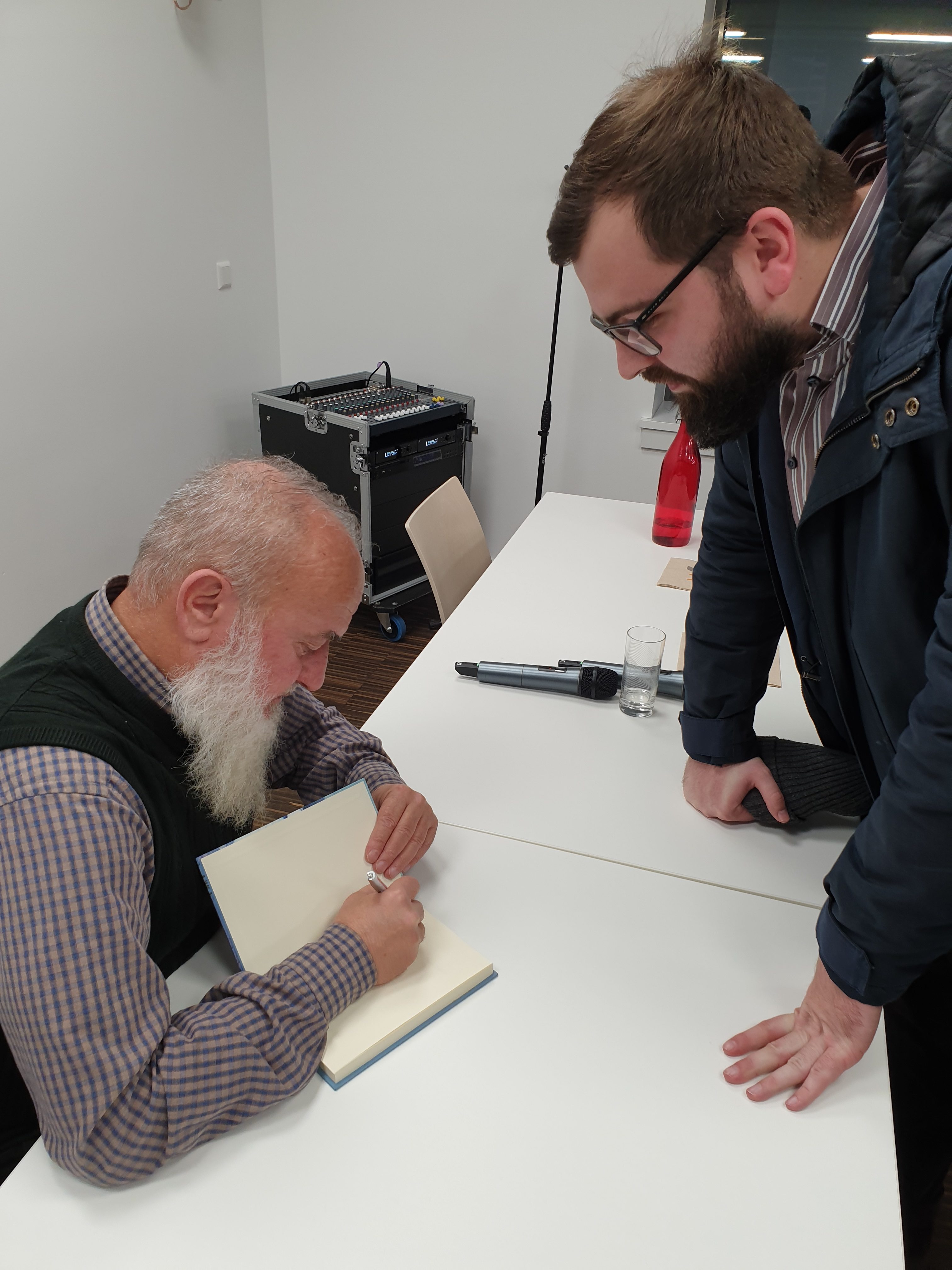 Na kraju promocije, autor je odgovarao na pitanja publike, te su zainteresirani bili u prilici uz knjigu dobiti i posvetu autora.