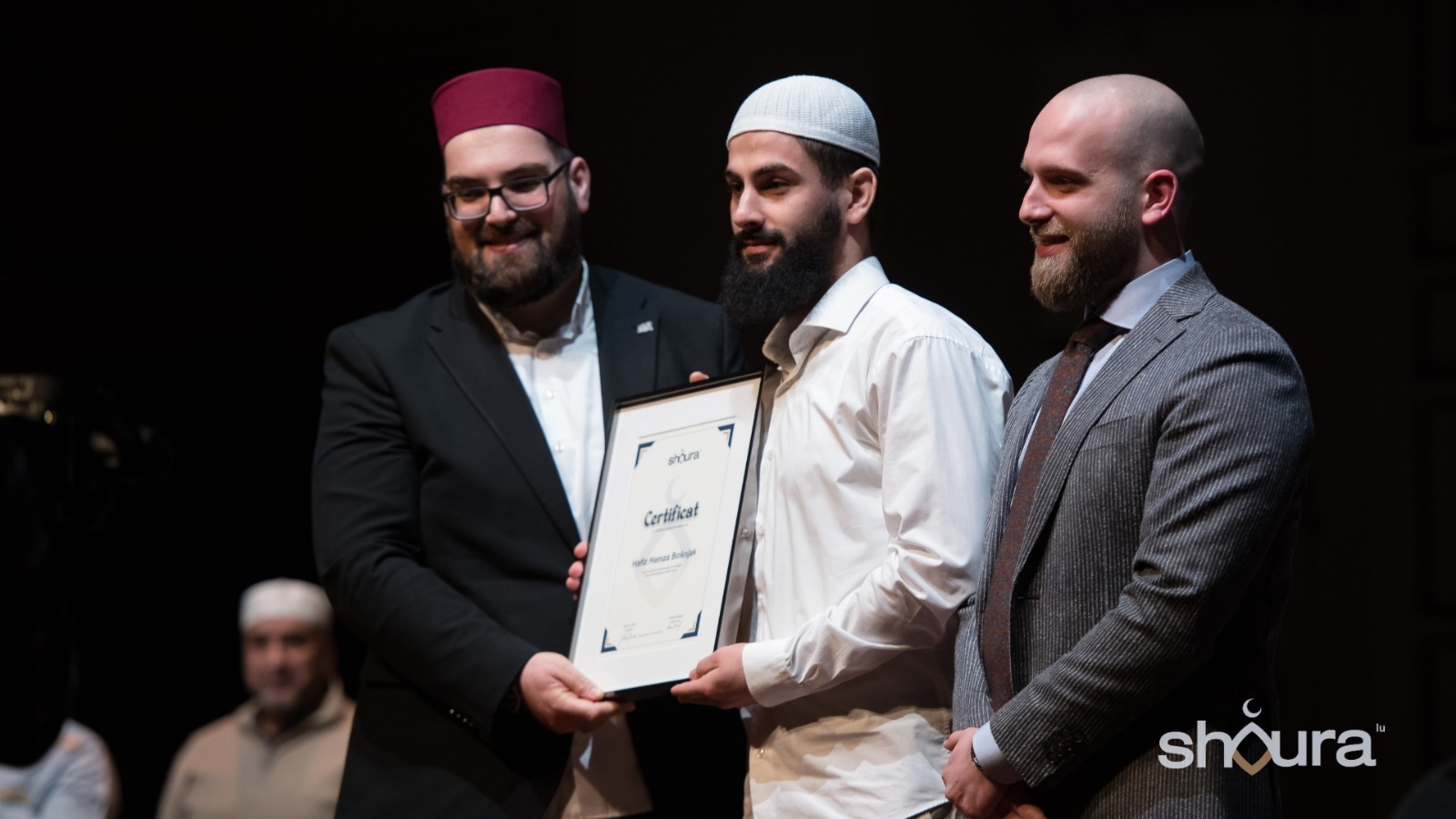 Vrhunac ove divne manifestacije – brojem prisutnih, kvalitetom organizacije, pokazanim jedinstvom, a i samom tematikom – možda do sada nenadmašene u Luksemburgu, svakako u okvirima muslimanske zajednice, bio je dodjela priznanja prvom hafizu rođenom u Luksemburgu, Hamzi Bošnjak. Prigodnu hediju i plaketu, mladom hafizu Hamzi uručili su vjerski poglavar muslimana Luksemburga hafiz Hilmija ef. Redžić, i predsjednik Šure, Jasmin Jahić. – Njihova sažeta obraćanja tokom večeri, dodatno su unijela pozitivnu energiju u izvanrednu atmosferu koja je vladala tokom cjelokupnog programa manifestacije.