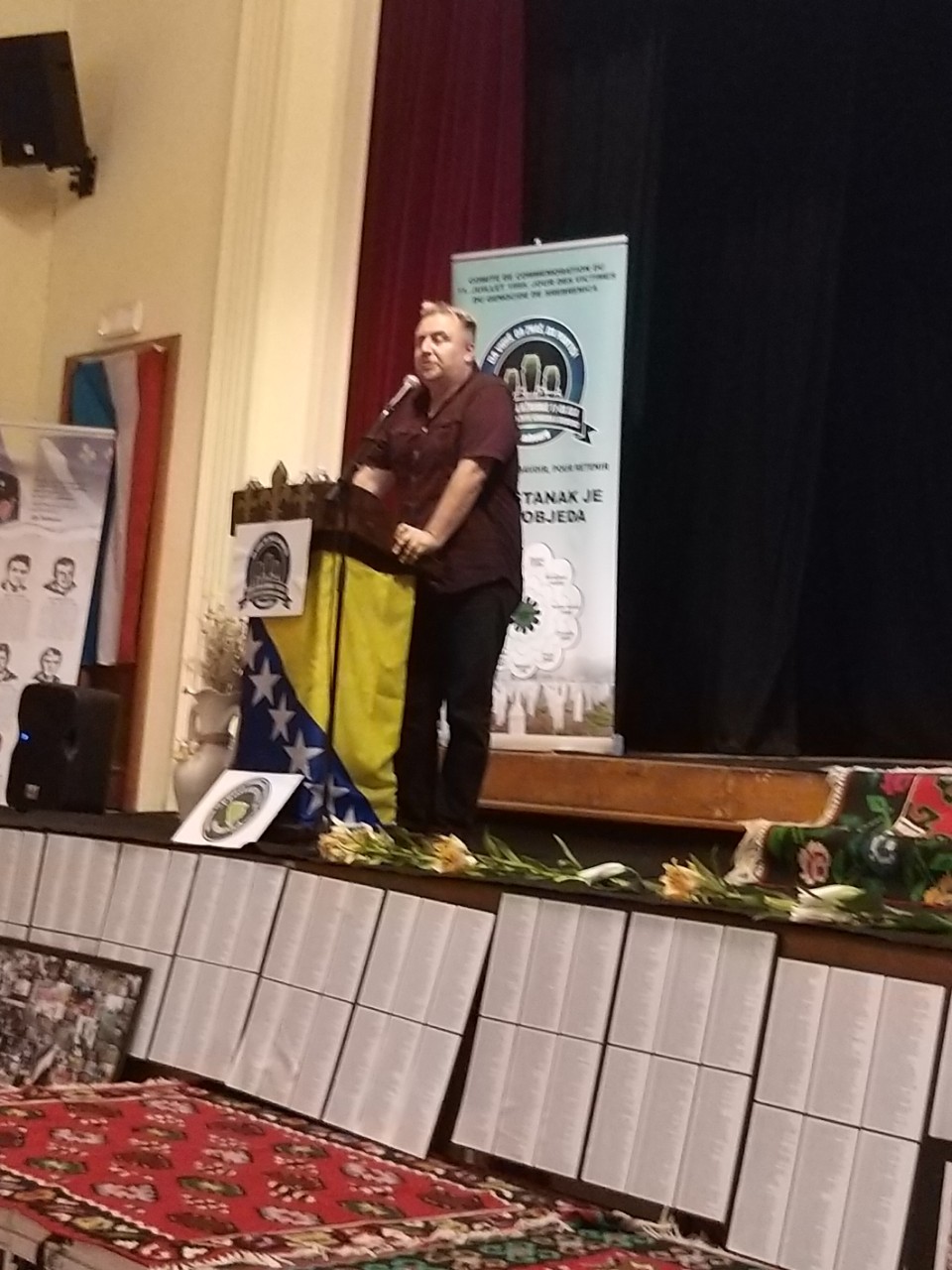 Potom se prisutnima obratio režiser, novinar i publicista, Avdo Huseinović. Nakon kraćeg uvoda, projektovao je odabrane dijelove iz nekoliko njegovih izvrsnih dokumentaraca ratne tematike, iz kojih su, na osnovu prezentovanih činjenica, prisutni u sali lahko došli do zaključka da genocid nad Bošnjacima nije se desio samo 1995. godine u Srebrenici, već da se genocid odvija osmišljeno i unazad nekoliko vijekova tj. u kontinuitetu, počevši od Velikog bečkog rata, pa kroz takozvanu “istragu poturica” u Crnoj Gori – genocid koji je opjevan i glorifikovan u Gorskom vijencu, pa kroz etničko čišćenje Bošnjaka iz dijelova Sandžaka i centralne Srbije nakon Prvog srpskog ustanka, pa sve do genocida počinjenog nad Bošnjacima tokom Drugog svjetskog rata i zadnje agresije nad Bosnom i Hercegovinom.